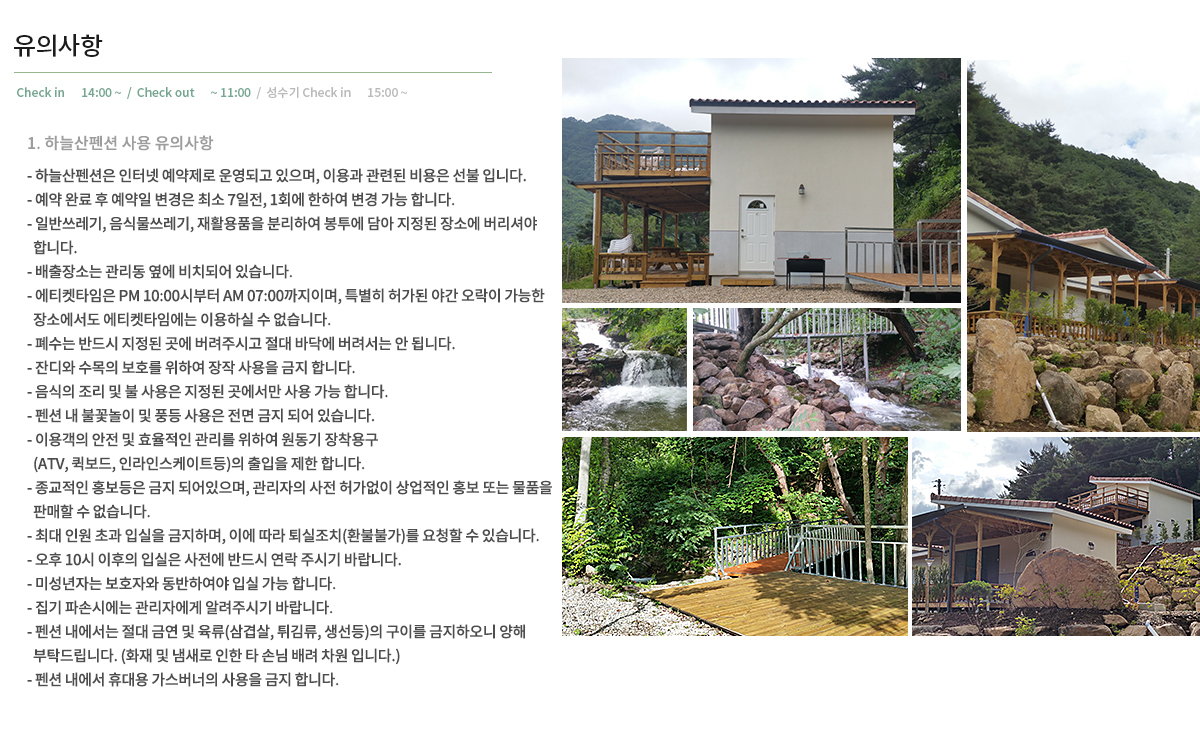 하늘산펜션(이하 ‘회사’라 한다)는 이용자의 개인정보를 보호하고 이와 관련한 고충을 신속하고 원활하게 처리할 수 있도록 다음과 같이 개인정보 처리방침을 수립·공개합니다.